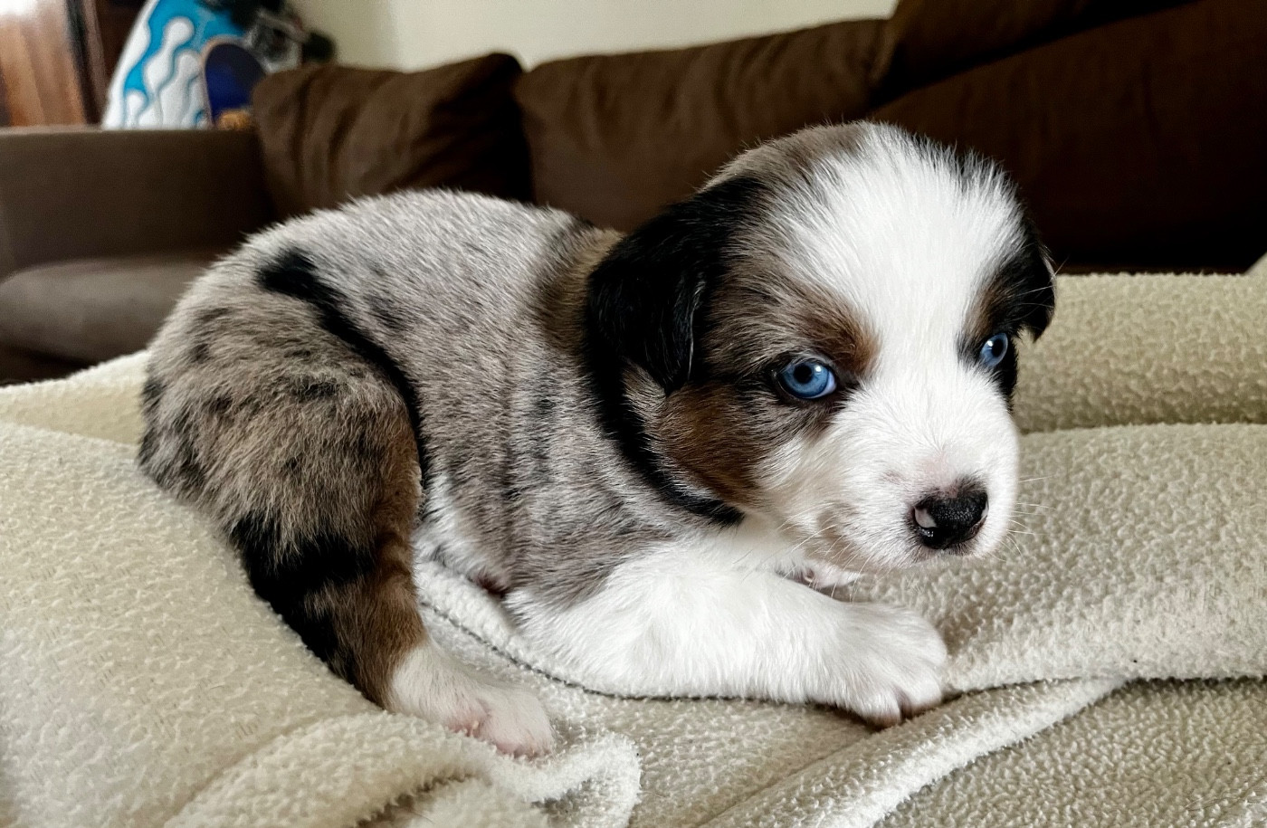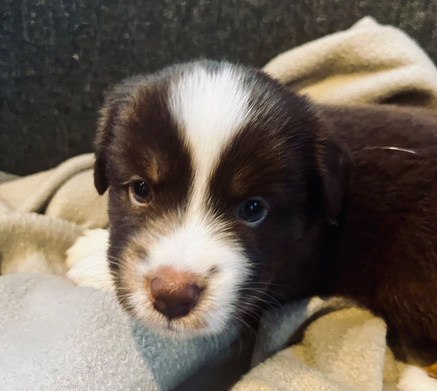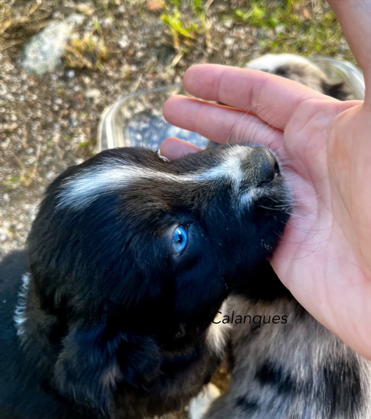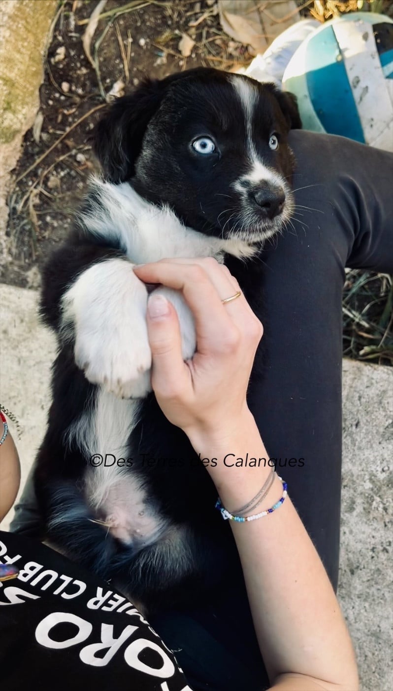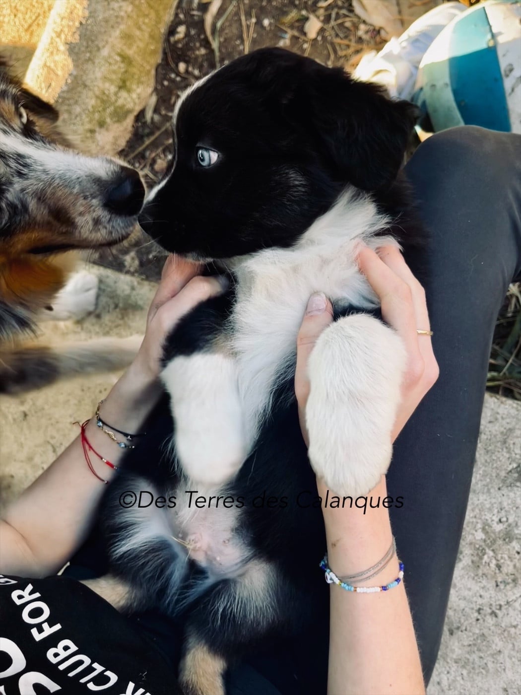 Très joli chiot mâle tricolore noir, yeux bleus. Chiot très câlin